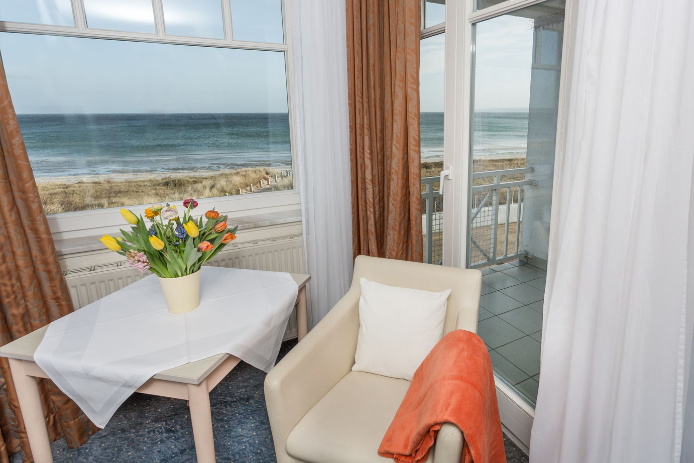 Den Meerblick haben Sie bei den landseitigen ohne Balkone Zimmern nicht, jedoch genießen Sie hier für günstigere Preise immer noch von den Vorteile unserer direkten Strandlage.